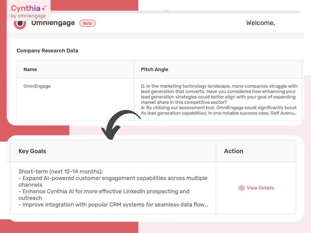 Cynthia aligns value propositions with pain points by analyzing key points from annual reports, webpages, and other sources to craft persuasive emails that address specific challenges. She can update value propositions to align precisely with the buyer’s pain points, ensuring each communication remains relevant and compelling.