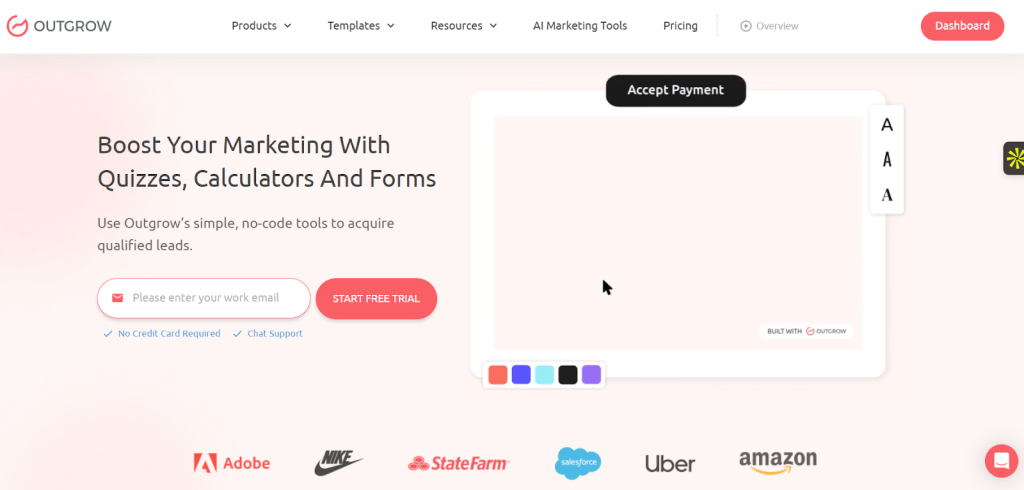Outgrow helps you turn cold traffic into qualified leads using personalized quizzes, calculators, and chatbots. It’s ideal for engaging prospects early and capturing data through fun, interactive experiences that provide value while gathering crucial qualification information.